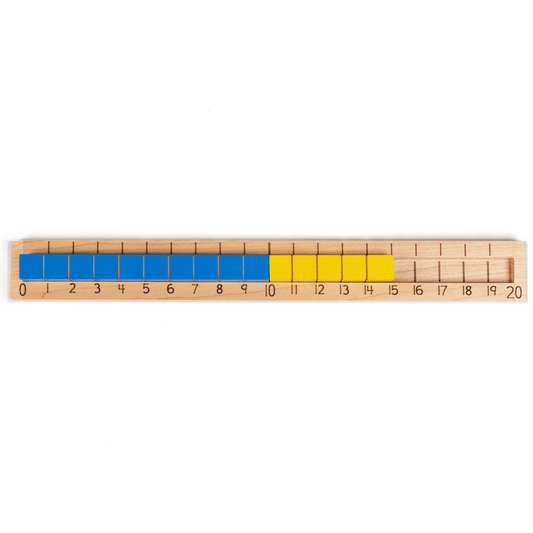 Number lines are important in helping children to develop number sense and helping them to visualize the numbers in relationship to one another. These number lines are made to work with our blocks - the unit size is the same. Like the wooden number track and the number track 1-20 they are laid out in sections of 10, each representing a decade. With different blocks, they can be used to visualize and conceptualize addition, subtraction, multiplication, and division.